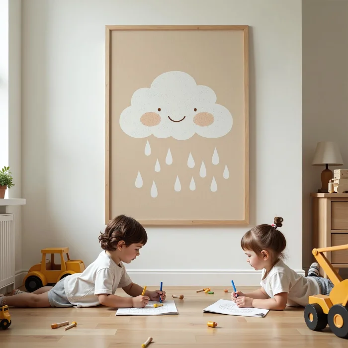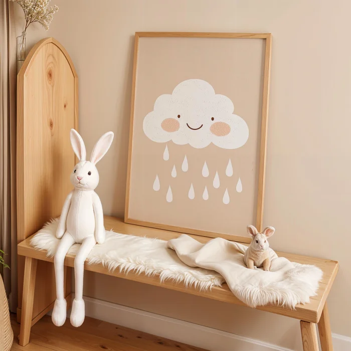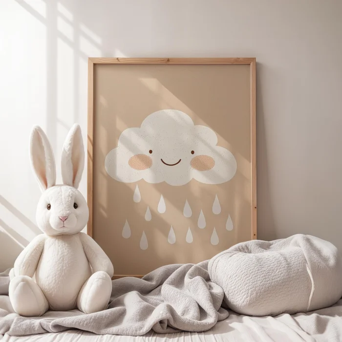 Product: Raindrops And Smiling Cloud Kids Room Wooden Wall Art