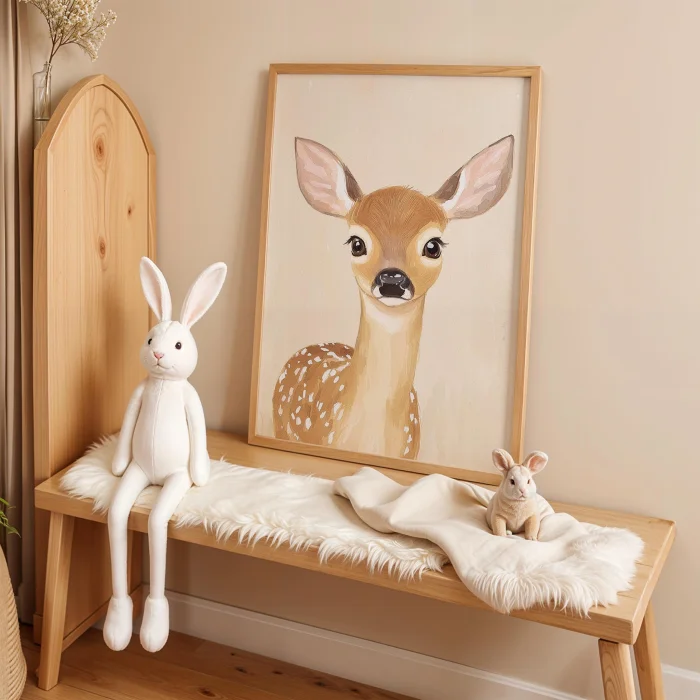 Product: Realistic Fawn Portrait Kids Room Wooden Wall Art