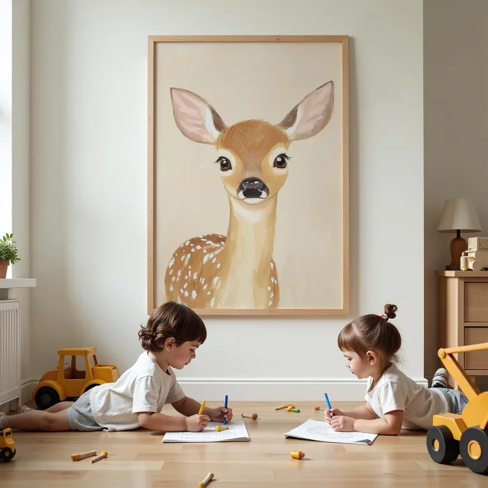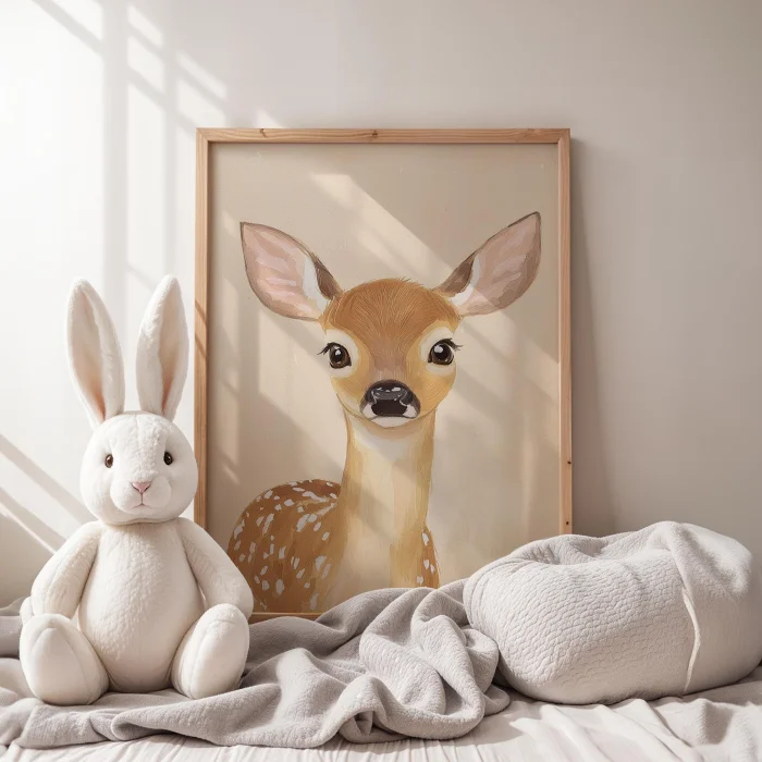 Product: Realistic Fawn Portrait Kids Room Wooden Wall Art