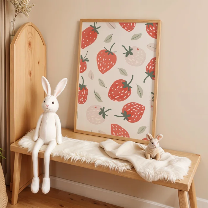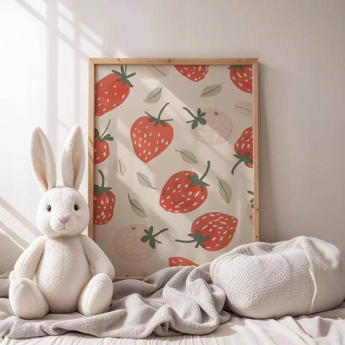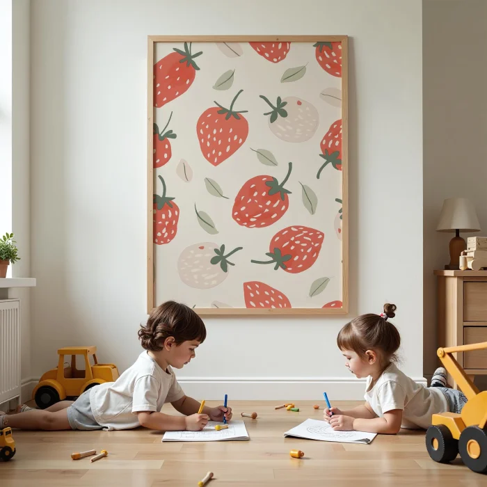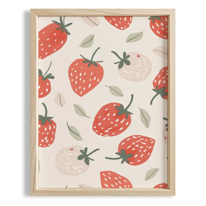 Product: Repeated Strawberry Fruit Pattern Kids Room Wooden Wall Art