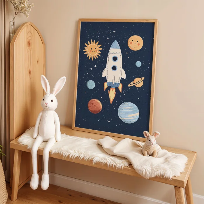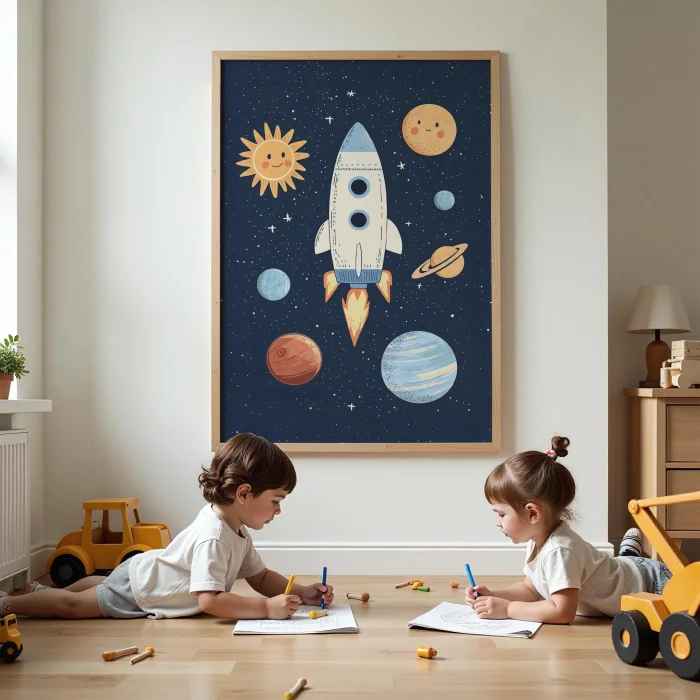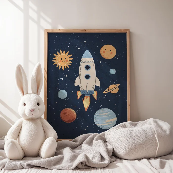 Product: Space Rocket And Planets Kids Room Wooden Wall Art