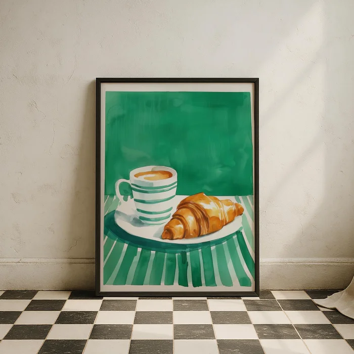 Product: Kitchen Stories - Coffee Ve Kruvasan Wooden Framed Wall Art