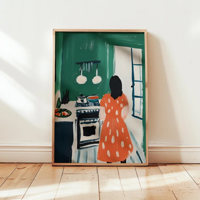 Product: Kitchen Stories - Red Dress Wooden Framed Print