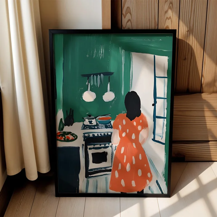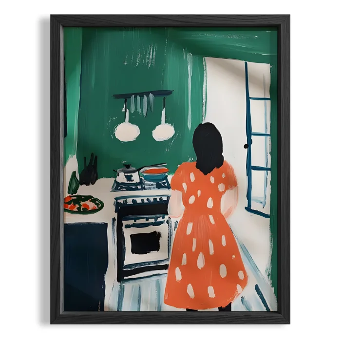 Product: Kitchen Stories - Red Dress Wooden Framed Print
