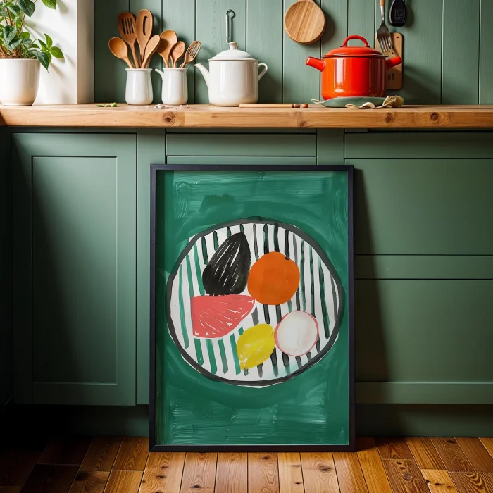 Product: Kitchen Stories - Renkli Meyve Tabağı Wooden Framed Wall Art
