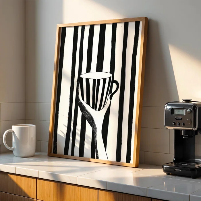 Kitchen Stories - Siyah Striped Coffee Wooden Framed Wall Art