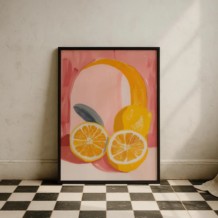 Product: Lemons Pink Background Mediterranean Italy Collection Kitchen Wall Art