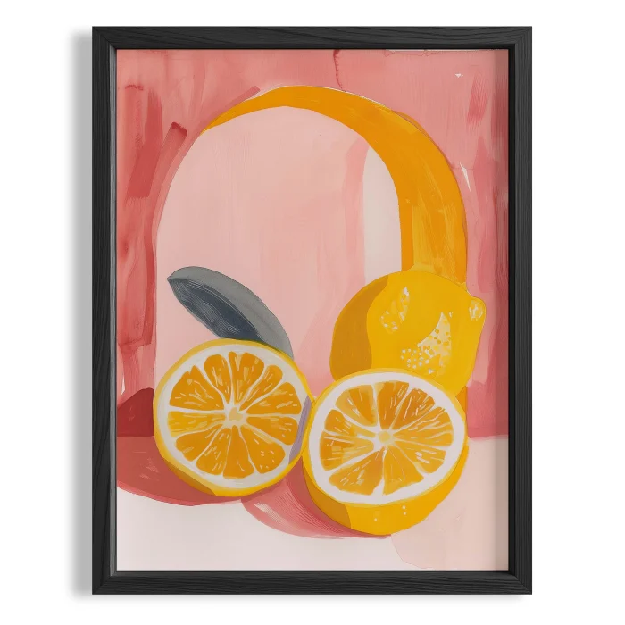 Lemons Pink Background Mediterranean Italy Collection Kitchen Wall Art
