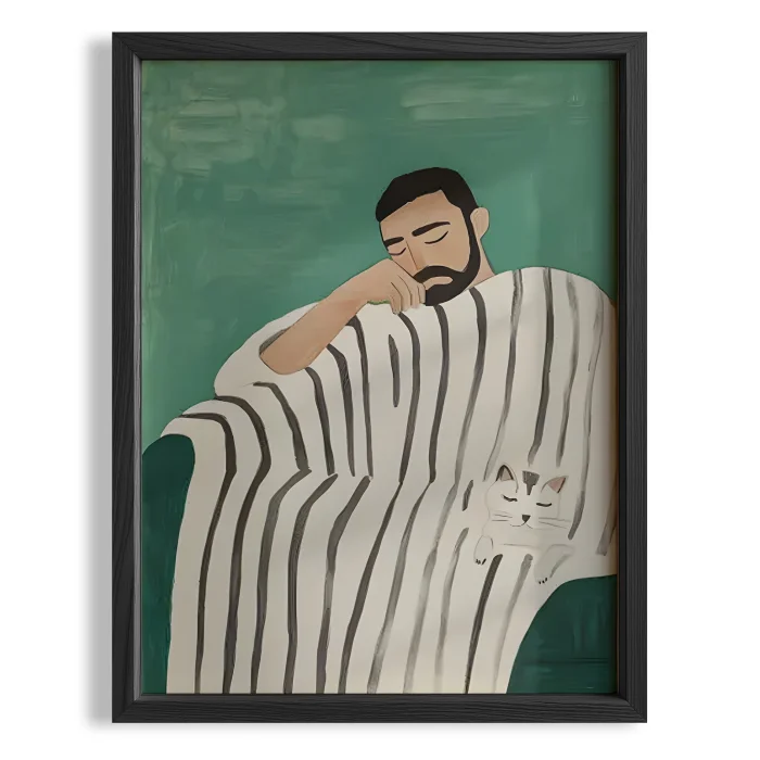 Product: Male Portrait Iii - Striped Rest Wooden Framed Print
