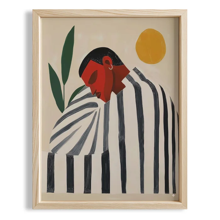 Product: Man Portrait - Striped Boho Wooden Framed Wall Art