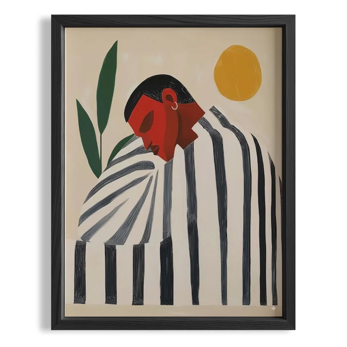 Product: Man Portrait - Striped Boho Wooden Framed Wall Art