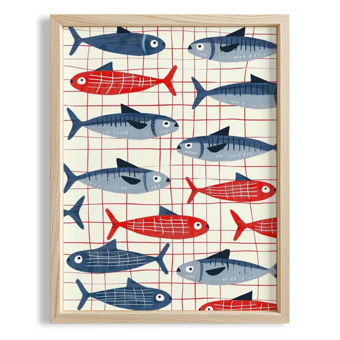 Product: Mavi Red Sardines Coastal Stil Kitchen Wall Art