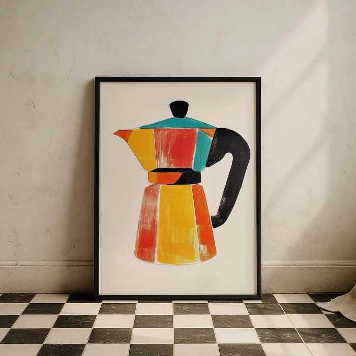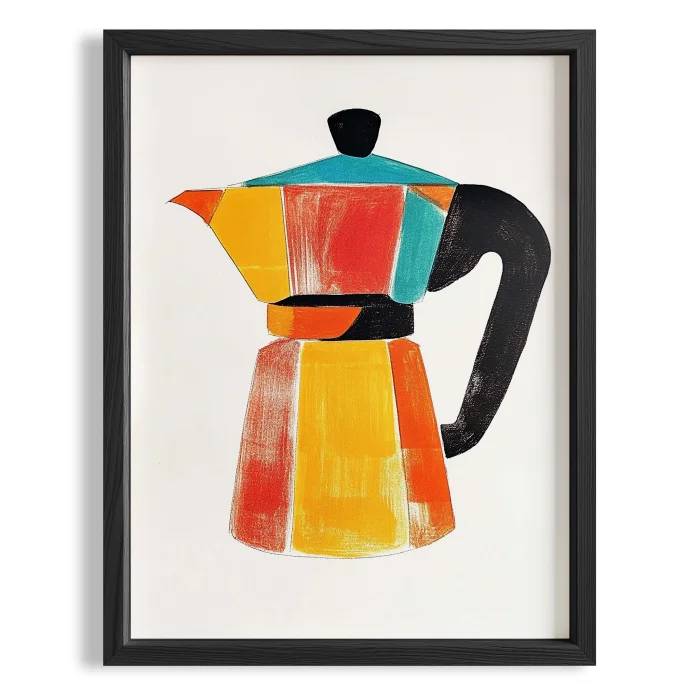 Moka Pot Coffee Colorful İllüstrasyon Kitchen Wall Art