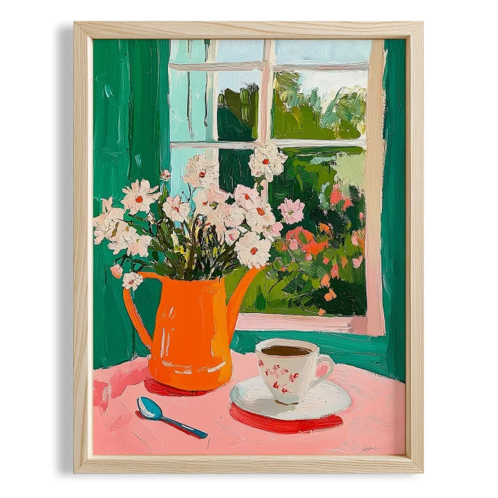 Product: Penceredeki Çiçekler - Sabah Kahvesi Wooden Framed Wall Art