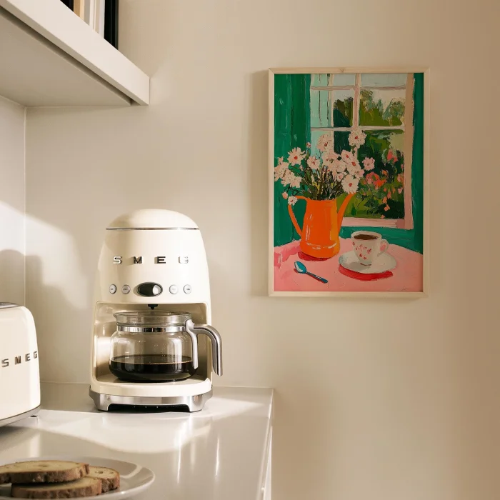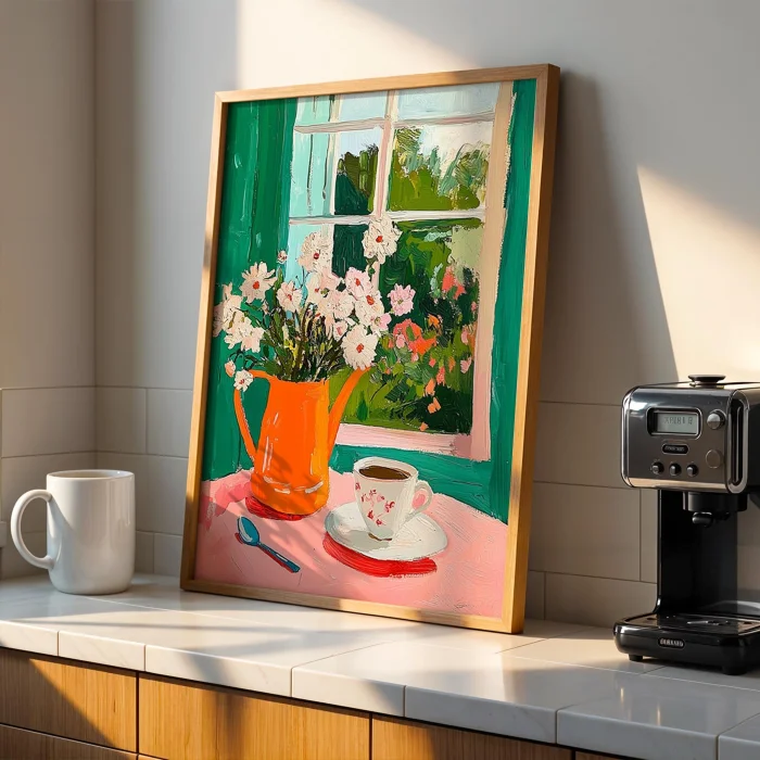 Product: Penceredeki Çiçekler - Sabah Kahvesi Wooden Framed Wall Art