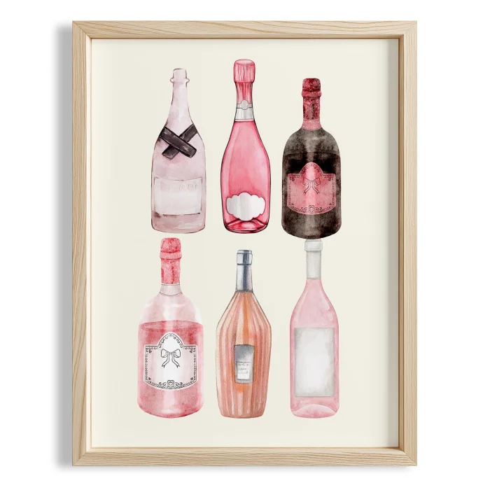 Product: Pink Champagne Bottles Cocktails Kitchen Wall Art