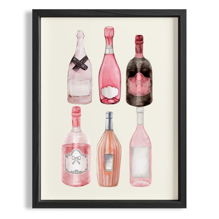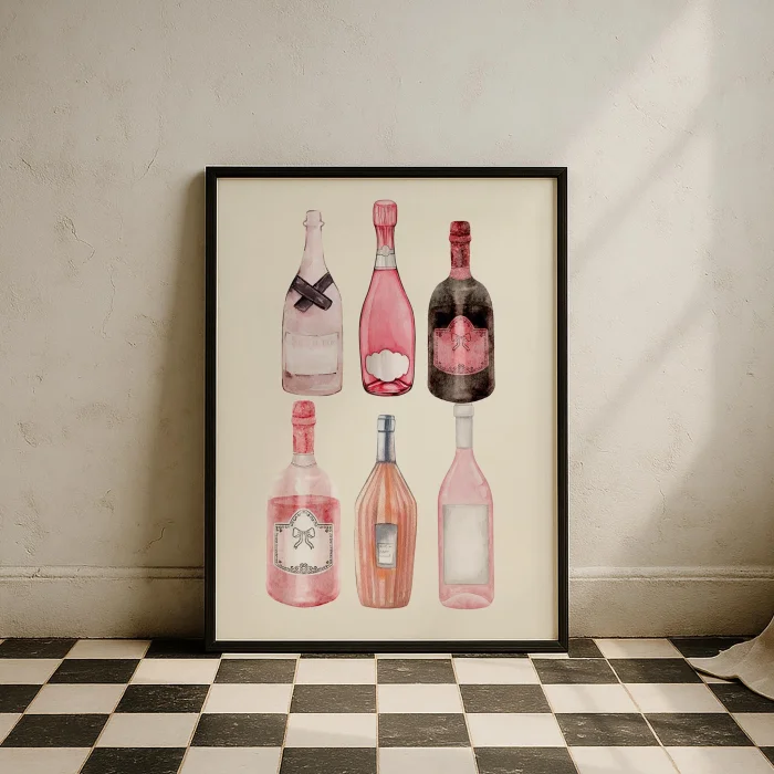 Pink Champagne Bottles Cocktails Kitchen Wall Art