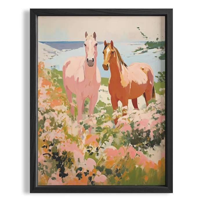 Product: Pink Çiçekli Kırda Atlar - Maximalist Wall Art