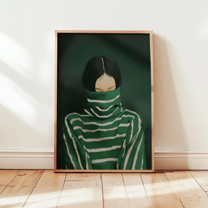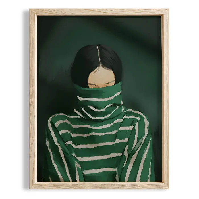 Product: Portrait & Stripes Emerald Sweater Wooden Framed Print