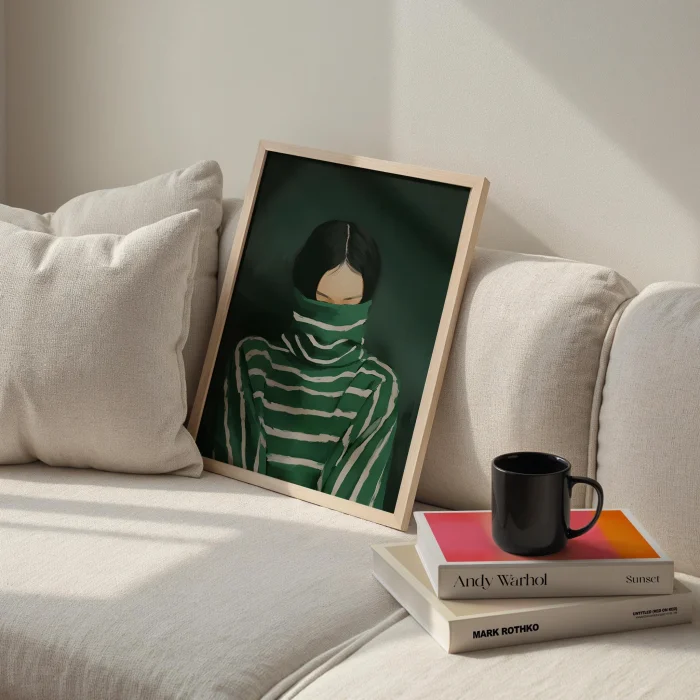 Product: Portrait & Stripes Emerald Sweater Wooden Framed Print