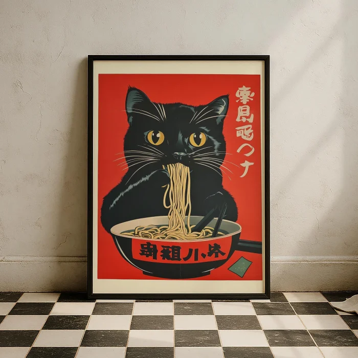 Product: Ramen Yiyen Siyah Kedi Wood-framed Art Print
