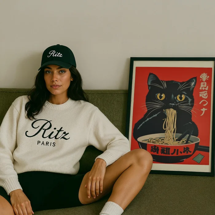Product: Ramen Yiyen Siyah Kedi Wood-framed Art Print
