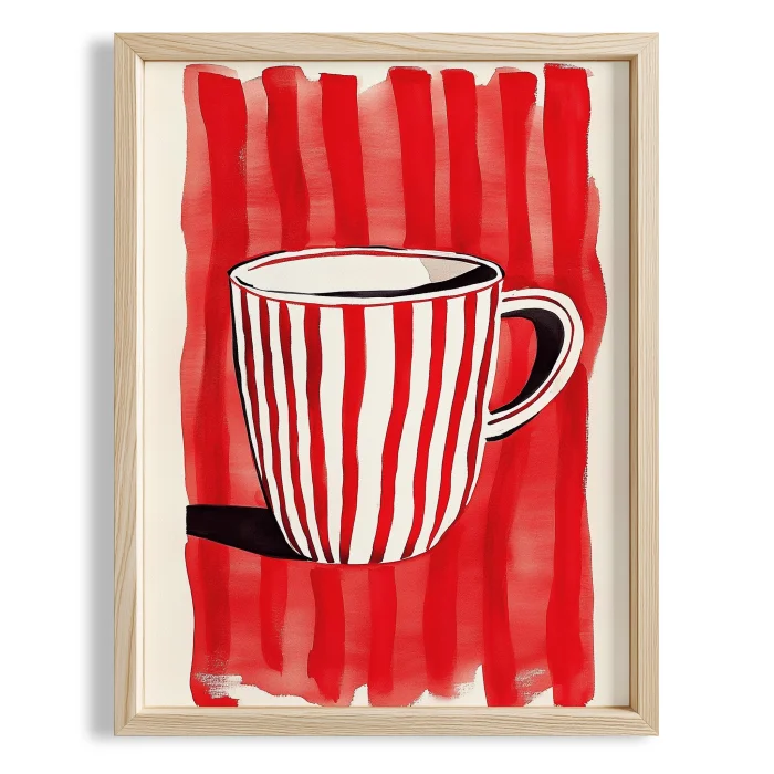 Product: Red Çizgi Serisi - Coffee Cup Wooden Framed Wall Art