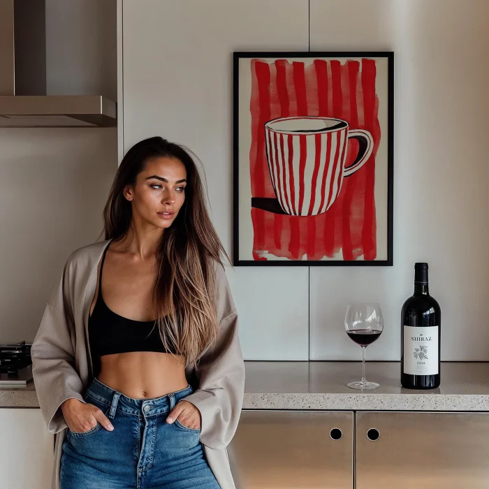 Product: Red Çizgi Serisi - Coffee Cup Wooden Framed Wall Art