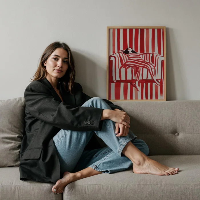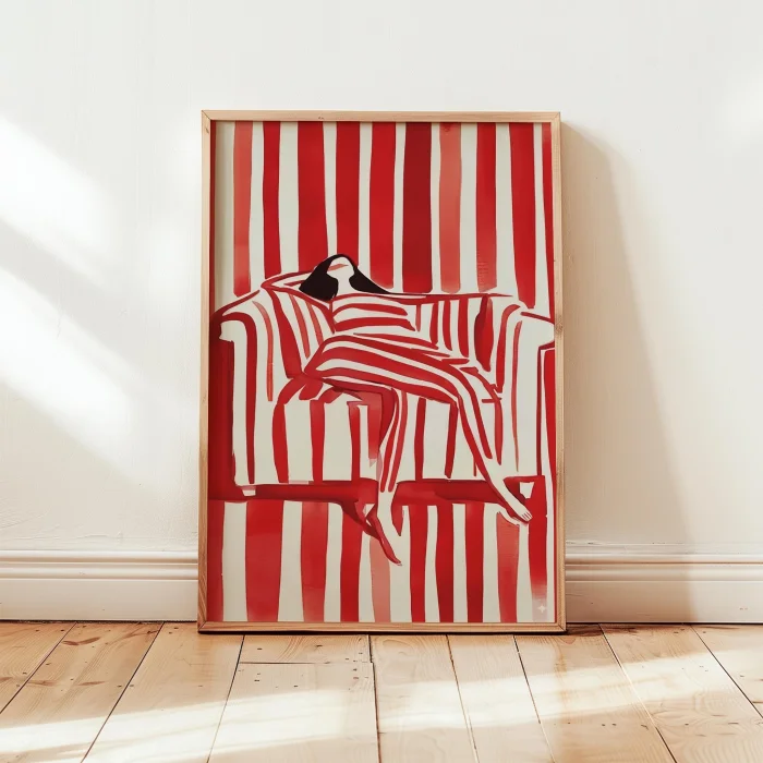 Product: Red Çizgi Serisi - Dinlenen Woman Wooden Framed Wall Art