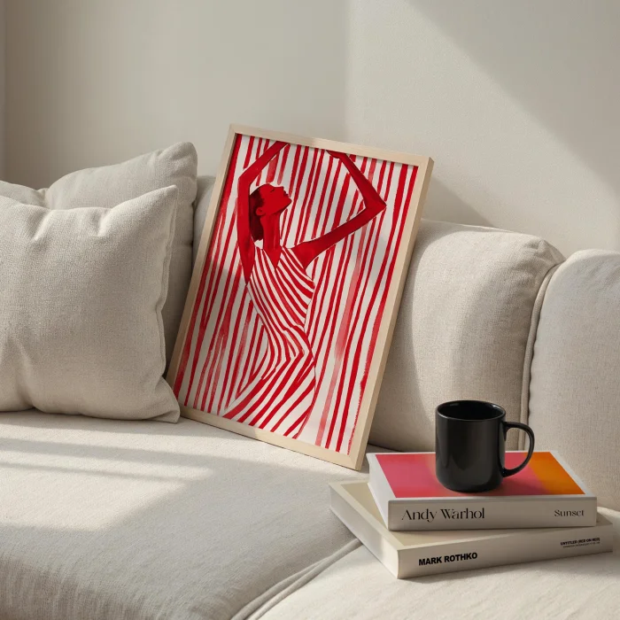Product: Red Çizgi Serisi - Zarafet Wooden Framed Wall Art