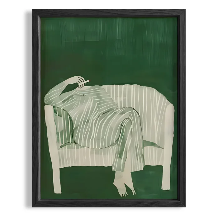 Product: Rest Xi - On A Striped Armchair Wooden Framed Print