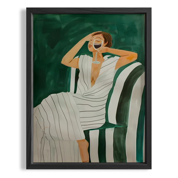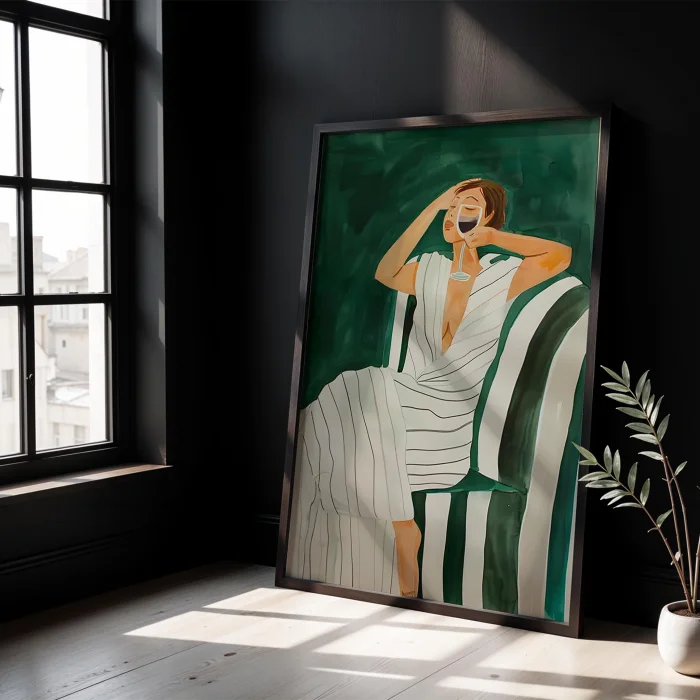 Product: Rest Xii - Emerald Striped Armchair Wooden Framed Print