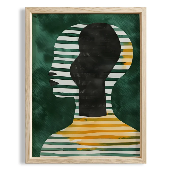 Product: Silhouette Ii - Mustard Lines Wooden Framed Print