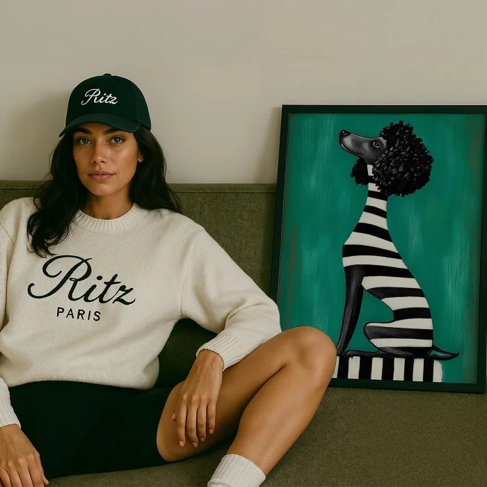 Product: Striped Poodle Dog - Asalet Wooden Framed Wall Art