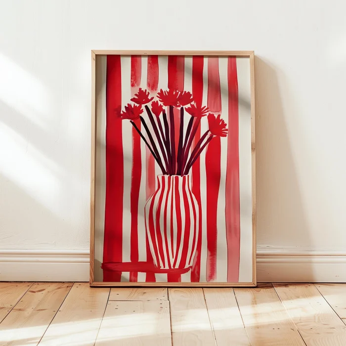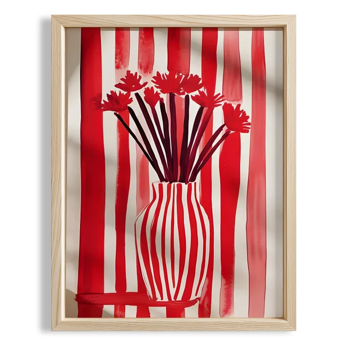 Product: Striped Vase X - Red Bouquet Wooden Framed Print