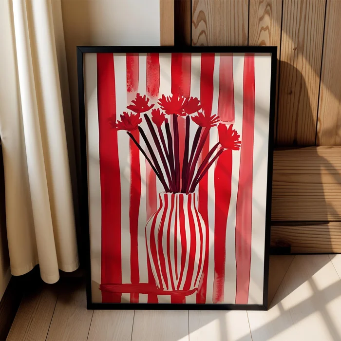 Product: Striped Vase X - Red Bouquet Wooden Framed Print