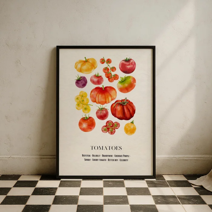 Product: Tomato Varieties Vegetables Kitchen Wall Art