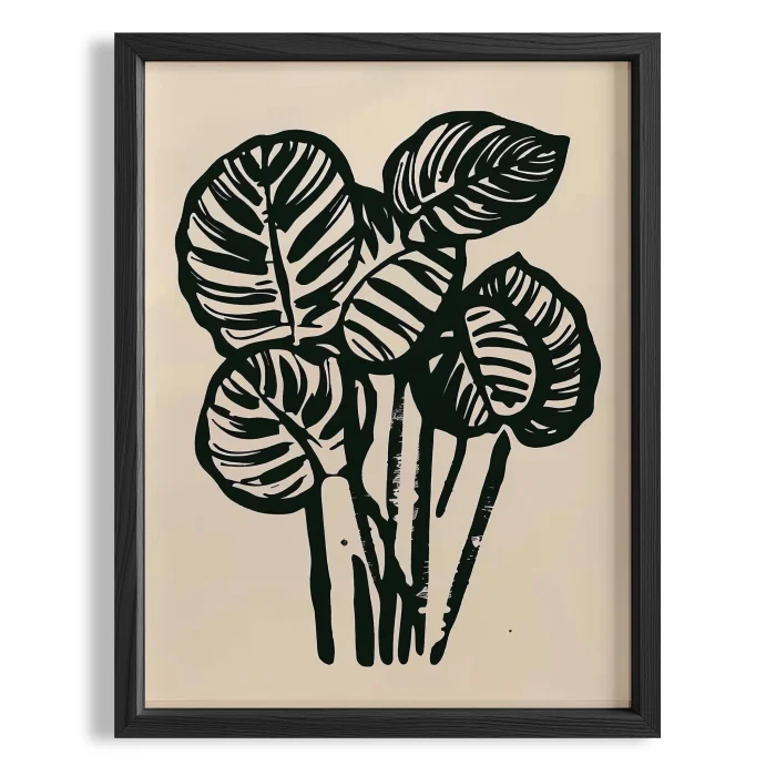 Tropik Yapraklar - Siyah Bej Wooden Framed Wall Art