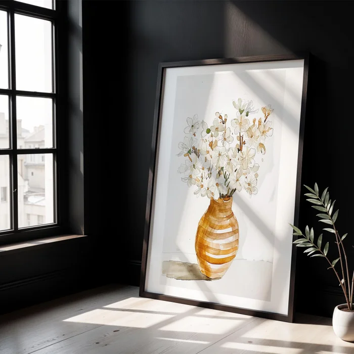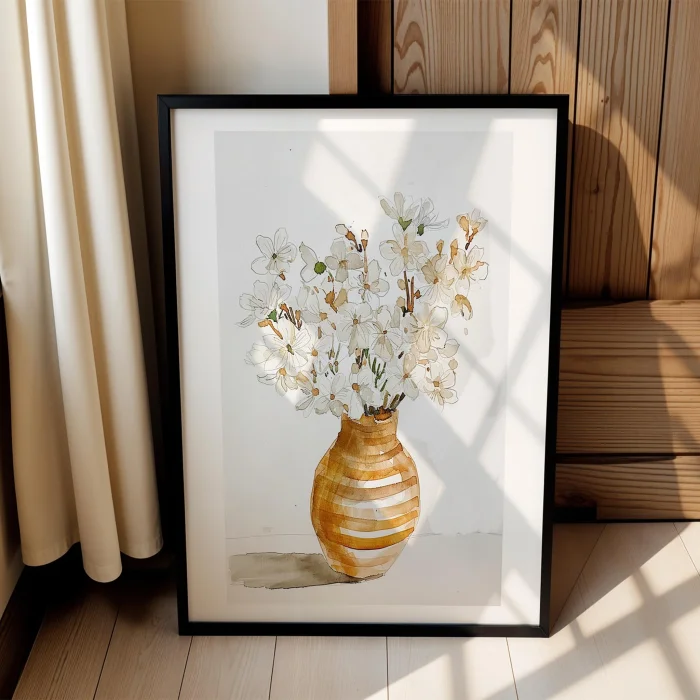 Product: Vazo Ve Çiçekler - Baharın Sade Zarafeti Wooden Framed Wall Art