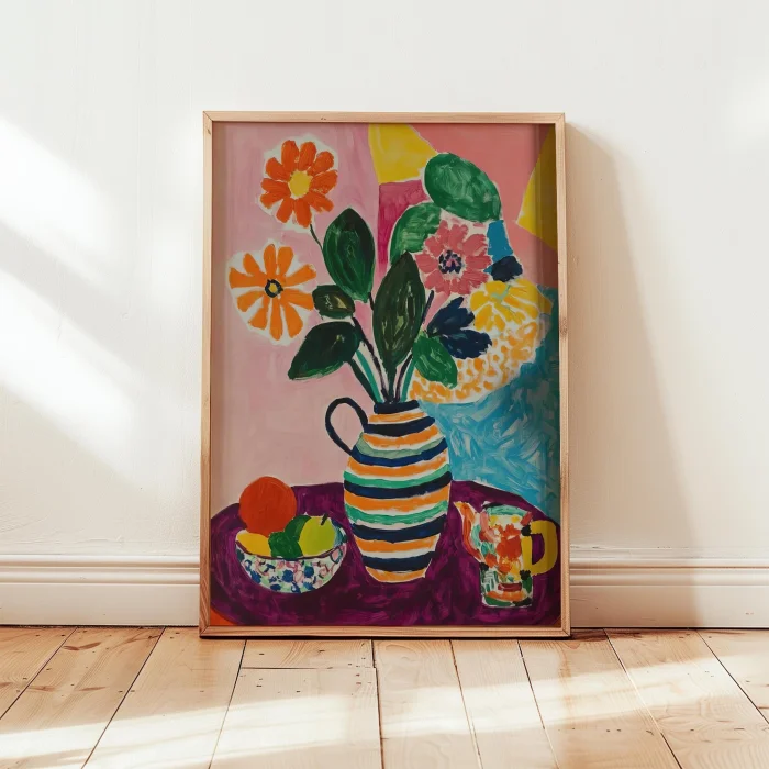 Product: Vazo Ve Çiçekler - Çiçekli Sofra Wooden Framed Wall Art