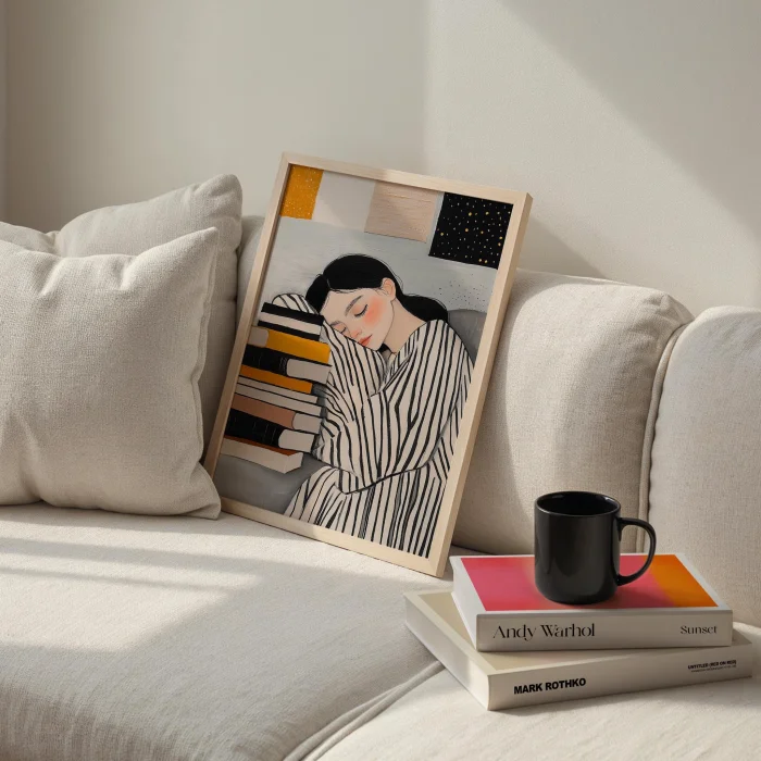 Product: Woman Portrait - Book And Calm Wooden Framed Wall Art