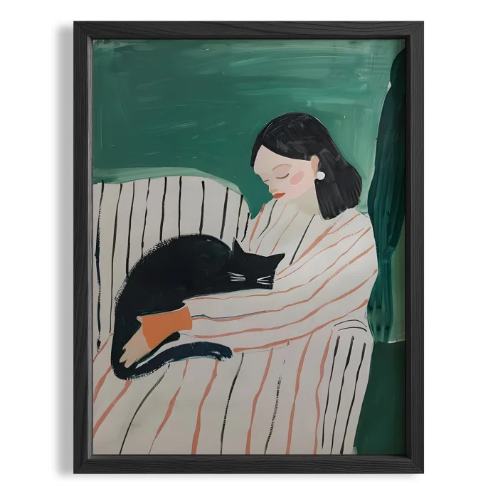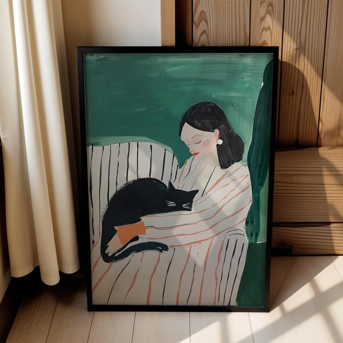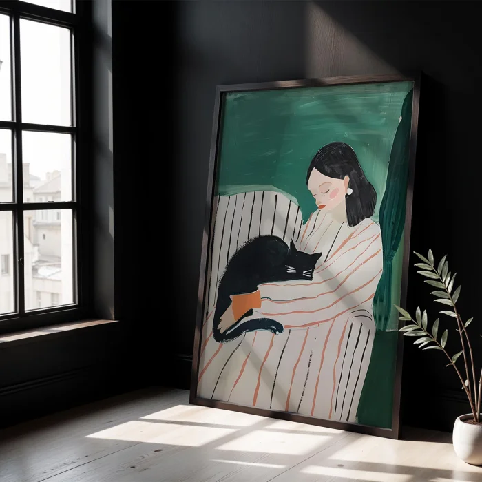 Product: Woman Portrait Ii - Calm With Cat Wooden Framed Print