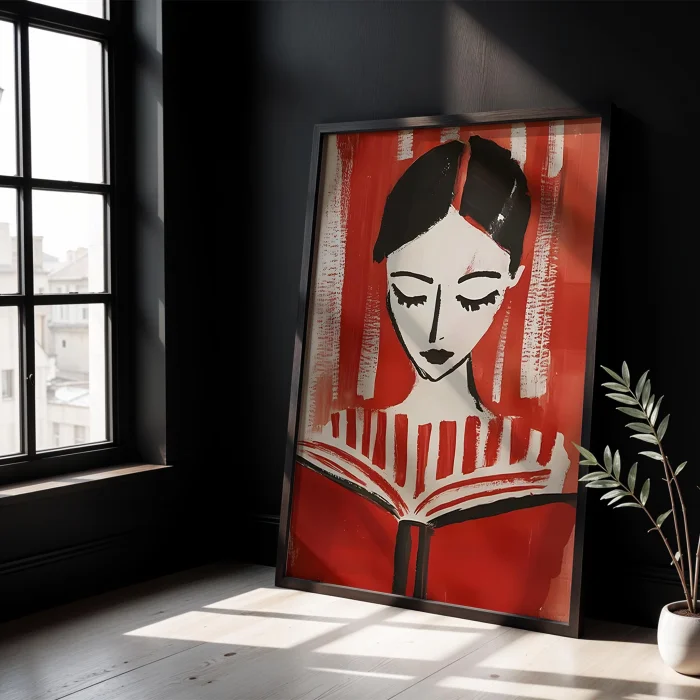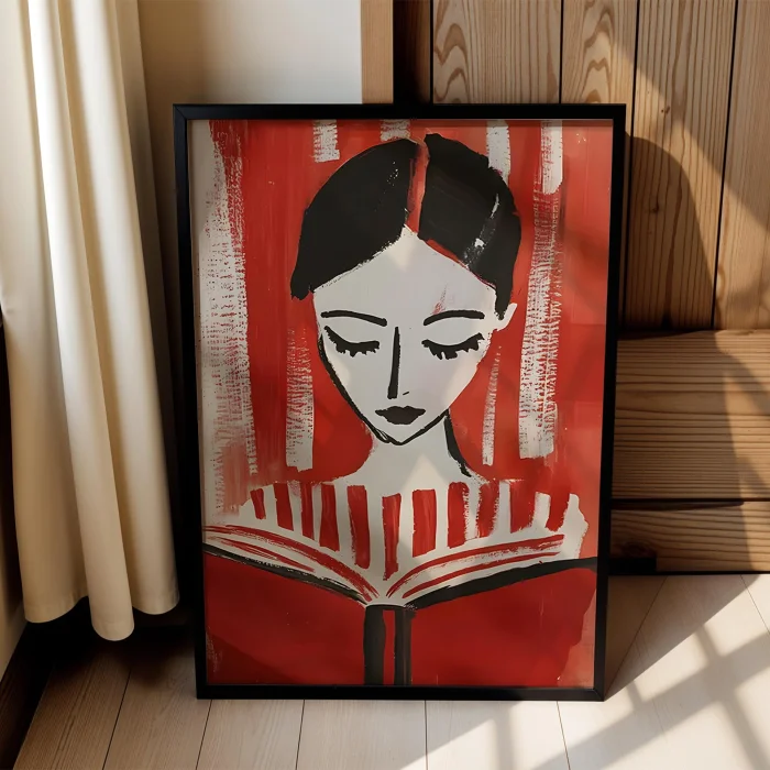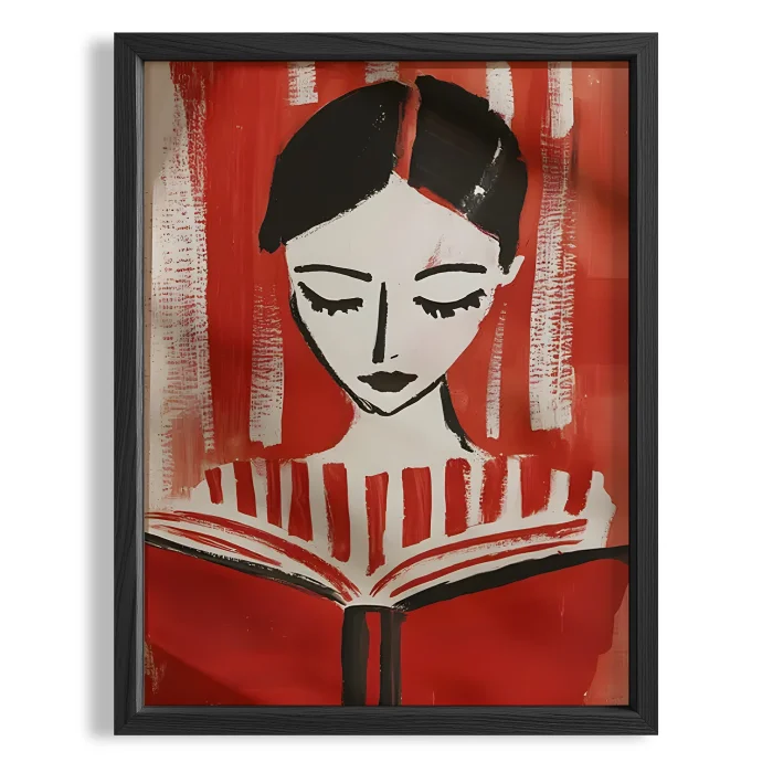Product: Woman Portrait L - Red Book Wooden Framed Print