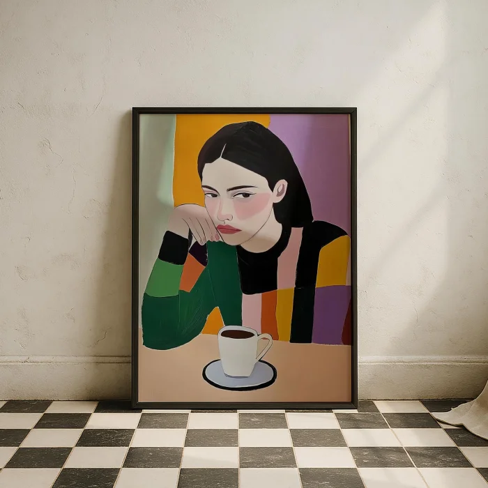 Product: Woman Portrait - One Sip Melancholy Wooden Framed Wall Art