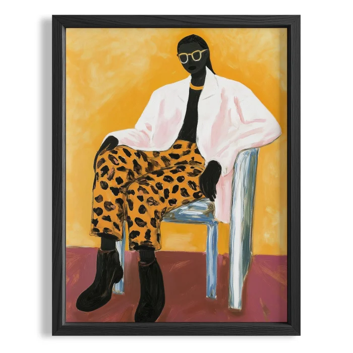 Product: Woman Portrait - Sarı Leopar Stil Wooden Framed Wall Art