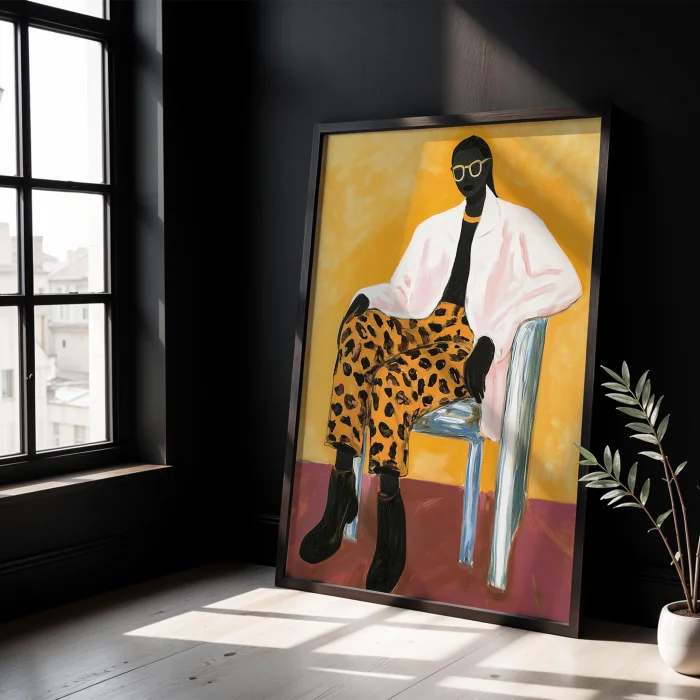 Product: Woman Portrait - Sarı Leopar Stil Wooden Framed Wall Art