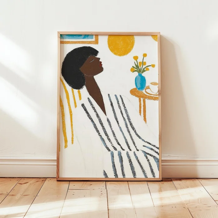Product: Woman Portrait - Striped Boho Wooden Framed Wall Art
