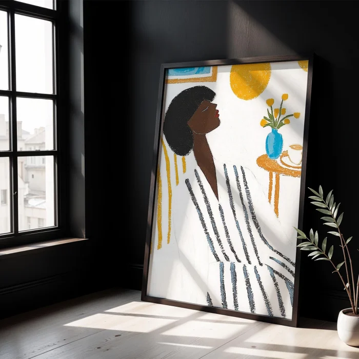 Product: Woman Portrait - Striped Boho Wooden Framed Wall Art