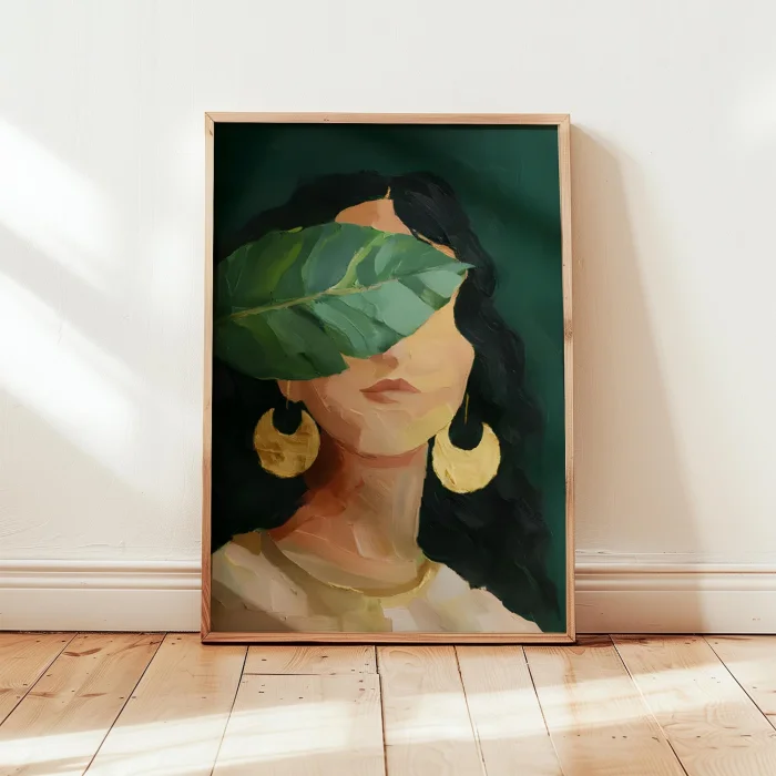 Product: Woman Portrait Xliii - Leaf Shadow Wooden Framed Print