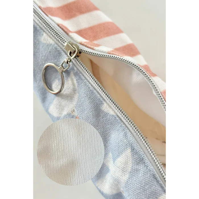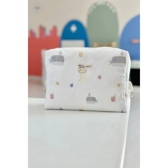Our Liquid-Proof Care Bags, which we prepare with GOTS certified 100% Organic Cotton fabrics, are designed to carry the personal needs of babies or mothers in a practical way. • The outside of the bag is made of organic cotton fabric and the inside is lined with liquid-proof fabric. There are 2 practical pockets inside. • With its soft texture, it can be stored in the form you want in a large bag, even if it is full. •Can be used as baby necessities, spare clothes, toys, makeup, travel bag. • Width: 22 cm Length: 16 Width: 7 cm. The outer fabric is 100% organic cotton woven fabric. Its inner lining is micro liquid proof fabric. It is normal to see cottoning on the product with the first wash. Discoloration that may occur after use and washing is due to the nature of the fabric. Machine washable alone up to 30 °C. It is not fenced by hand. It is made of GOTS certified yarn and dye materials with content suitable for babies. Similar Products ‹›